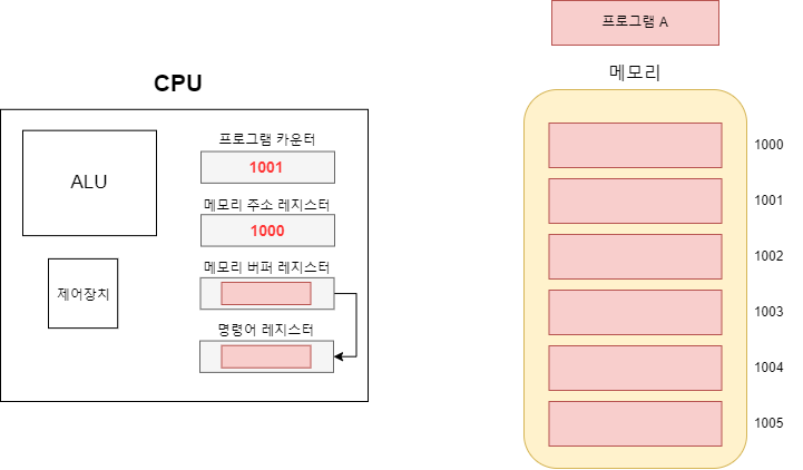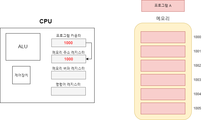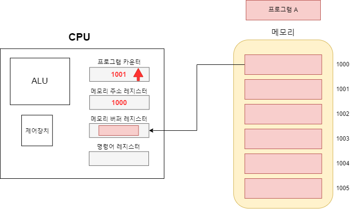 이로서 프로그램 카운터와 메모리 주소 레지스터의 차이점이 명확해 졌다. 현재 작업(1000)을 완료하면 프로그램 카운터에 저장된 다음 작업(1001)을 시작할 것이고 이런식으로 카운터가 증가하며 순차적으로 작업을 해 나갈 것이다.